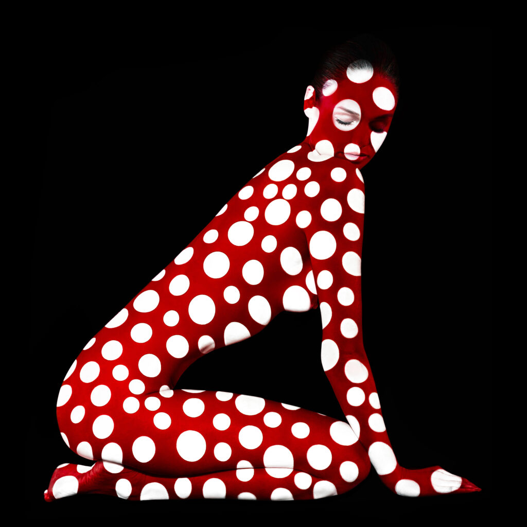 Pure photography, inspired by historically significant pop art and the undulating forms of the human body. The pattern takes focal priority as the lines of the body become the canvas. Rooted in high fashion, this series celebrates optical illusion coupled with vibrant color, inspiring unique and malleable interpretation.
